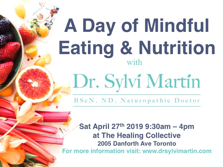 Join us at the Healing Collective on April 27th from 9:30am - 4pm for a Day of Mindful Eating and Nutrition with Dr. Sylvi Martin, Naturopathic Doctor. IN THIS FULL-DAY GROUP PROGRAM, YOU WILL: Learn foundations of healthy, balanced nutrition Explore your level of hunger, fullness & satisfaction, along with body sensations and emotional factors […]